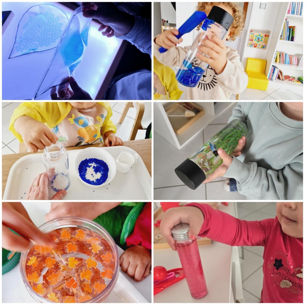- Favoriser l’éveil des sens (toucher, vue, odorat, ouïe, goût) à travers des jeux sensoriels riches et variés.