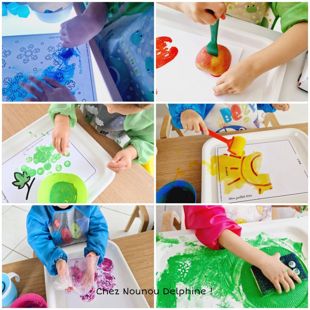 Chez Nounou, les activités créatives prennent souvent tout leur sens à travers un thème de la semaine ou du mois : les saisons, une fête (Carnaval, Halloween, Noël…), les couleurs, les émotions, les animaux…