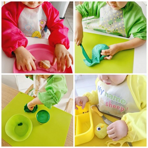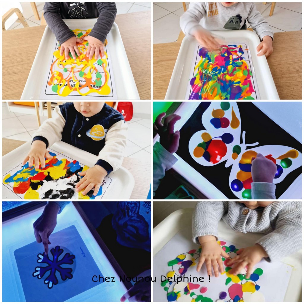Cela permet de découvrir les textures, les mélanges, les mouvements, tout en gardant les mains propres et sans risque de taches.