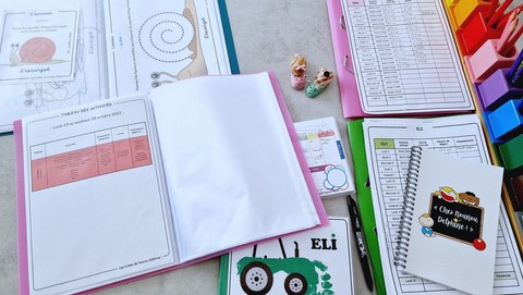 - On y glisse les fiches réalisées, les petites créations, les souvenirs de la semaine…
