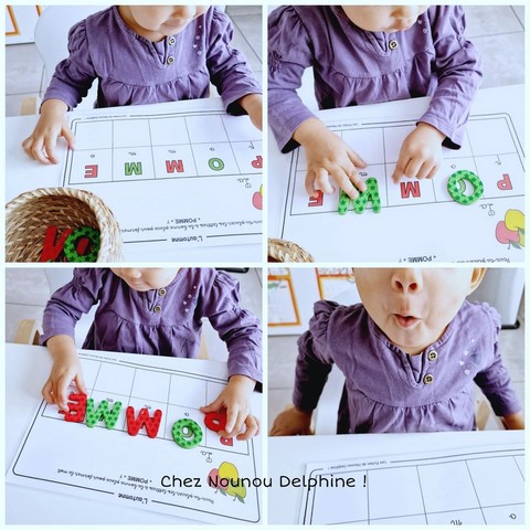 Dès que l’enfant s’y intéresse, je propose des jeux autour des sons, des mots, des lettres.