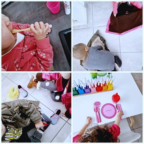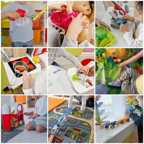 Ici, chacun peut s’inventer une histoire, un personnage, une situation : on prépare un repas, on soigne une peluche ou une poupée, on fait les courses, on bricole, on repasse, on nettoie, on s’occupe de son bébé, on invente un métier ou une aventure…