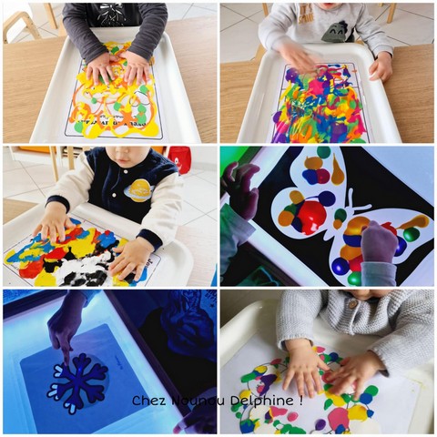 Ces moments de peinture libre et sensorielle sont très appréciés des enfants. Ils découvrent la matière, les sensations, les réactions, tout en laissant libre cours à leur imagination.