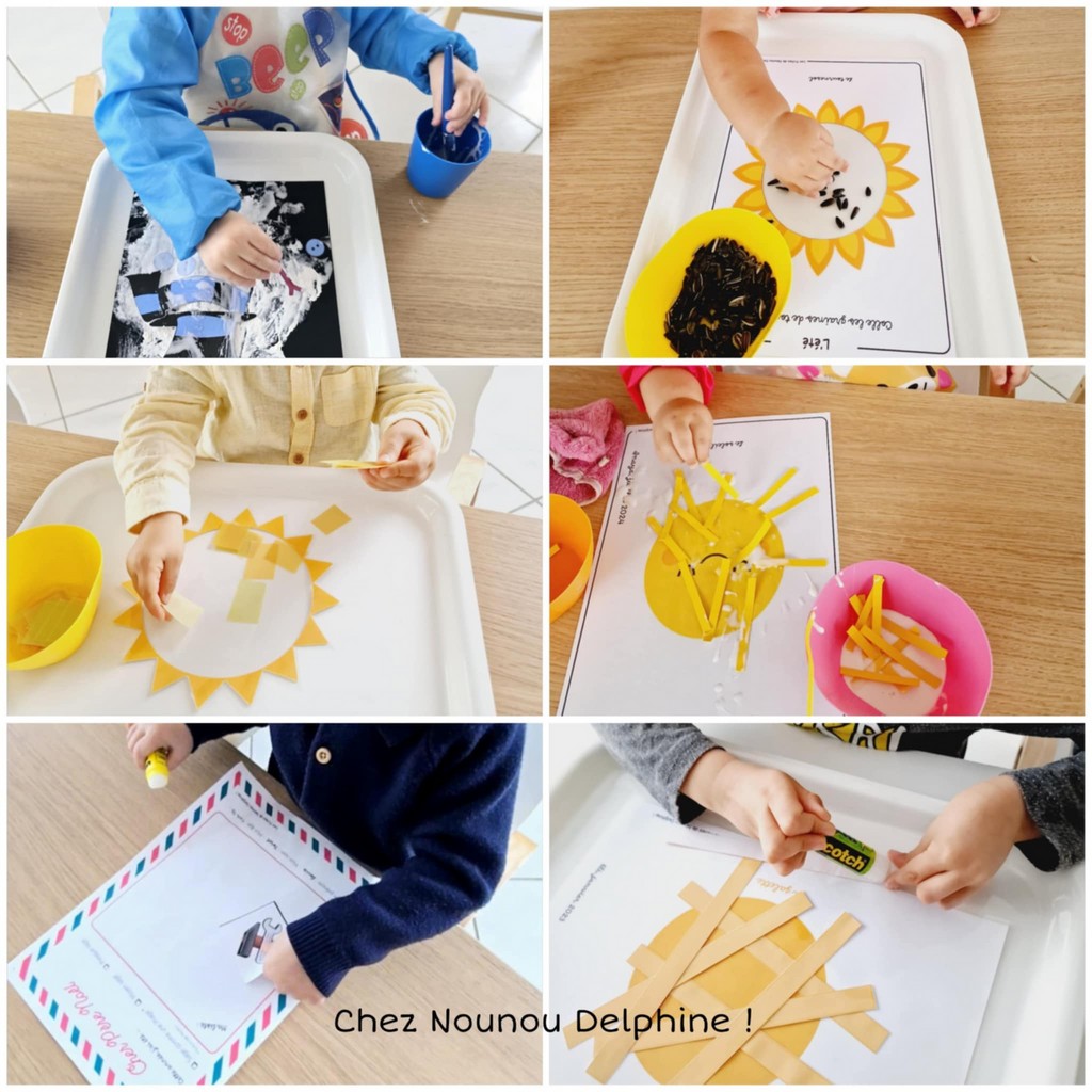 Chez Nounou, les activités créatives prennent souvent tout leur sens à travers un thème de la semaine ou du mois : les saisons, une fête (Carnaval, Halloween, Noël…), les couleurs, les émotions, les animaux…