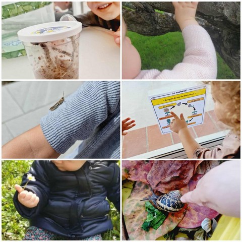 Même en automne ou en hiver, nous profitons du dehors : on s’habille chaudement, on saute dans les flaques, on observe la nature qui change, on s’invente des histoires… et on se dépense !