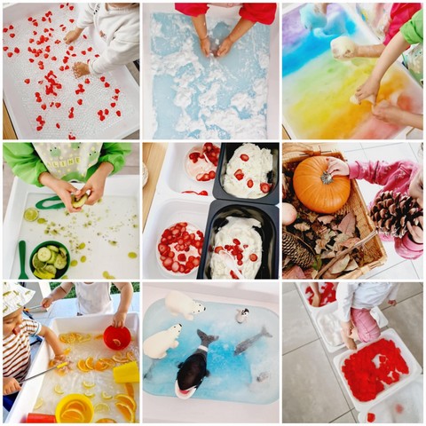 - Favoriser l’éveil des sens (toucher, vue, odorat, ouïe, goût) à travers des jeux sensoriels riches et variés.