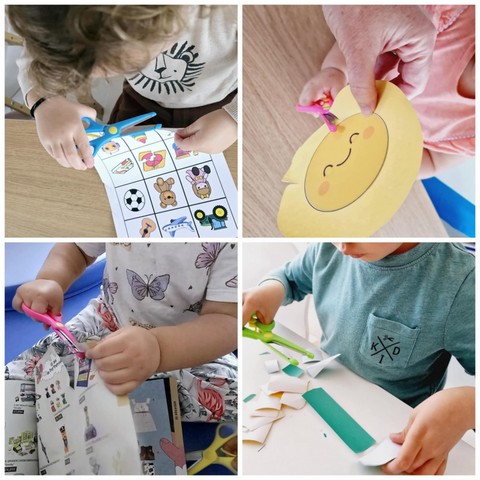 Avec leurs petites paires de ciseaux bien adaptées, les enfants apprennent à ouvrir, fermer, suivre une ligne, tourner le poignet, et surtout à se concentrer.